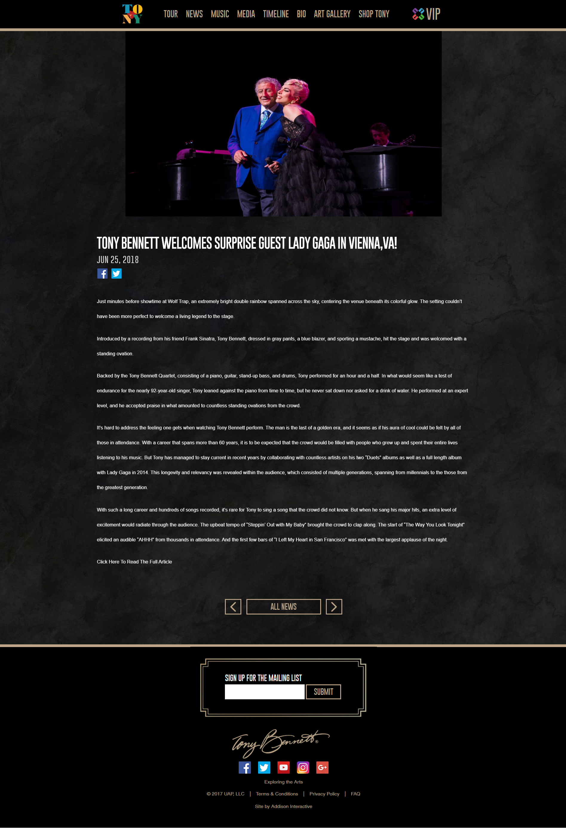 Tony Bennett’s people enjoyed my photography and review of his performance at Wolf Trap in Vienna, Virginia so much that they featured it on the news page of Tony’s website, tonybennettt.com